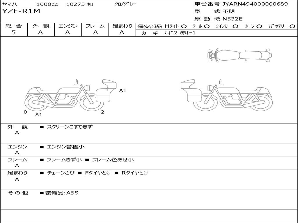 | Номер рамы / VIN | JYARN494000000689 |