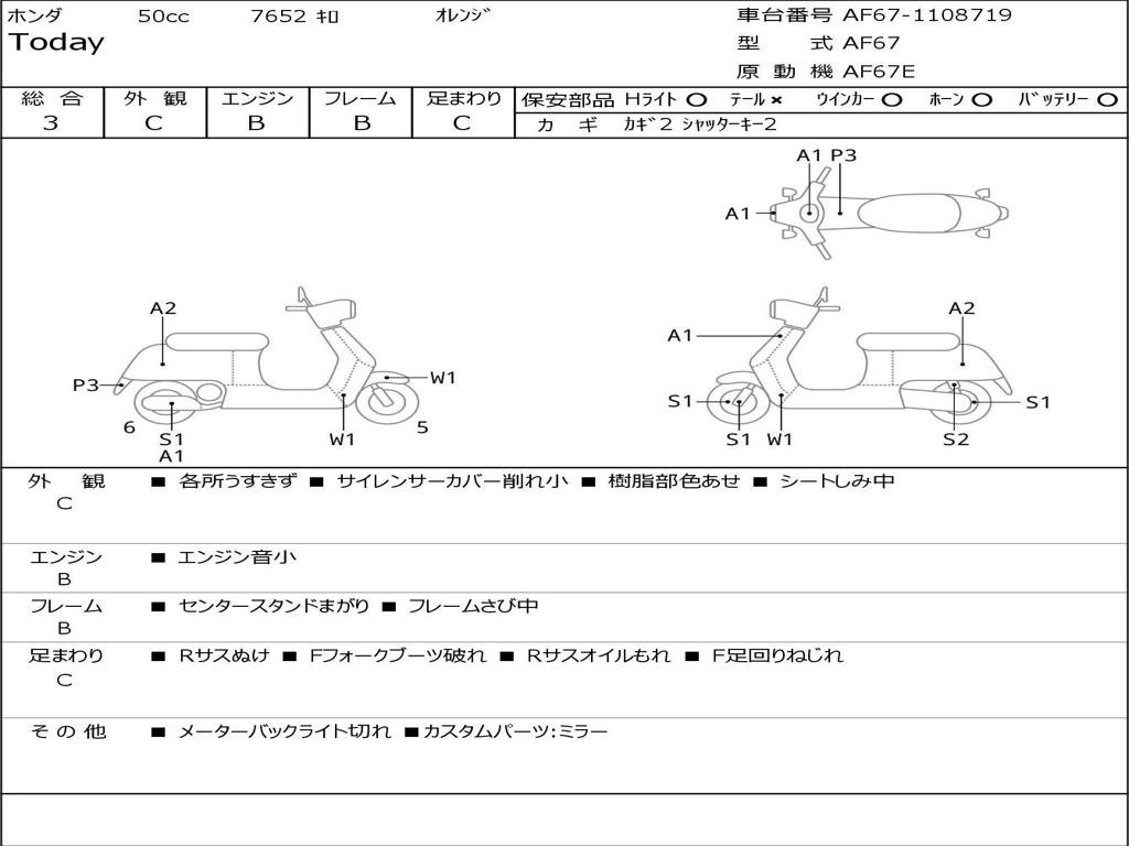 | Номер рамы / VIN | AF67-1108719 |