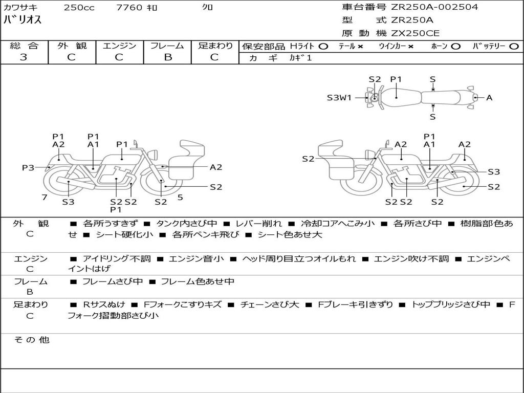 | Номер рамы / VIN | ZR250A-002504 |