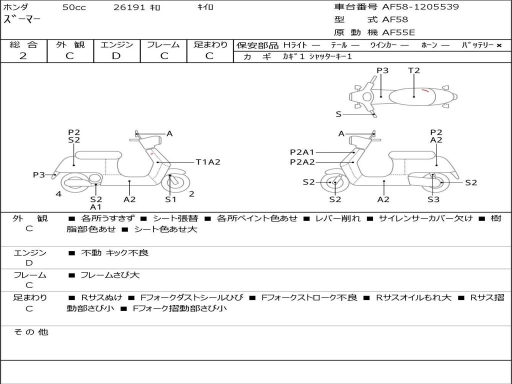 | Номер рамы / VIN | AF58-1205539 |
