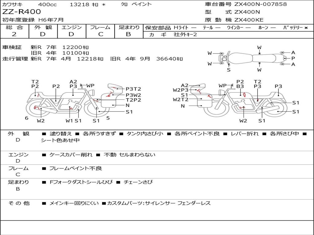 | Номер рамы / VIN | ZX400N-007858 |