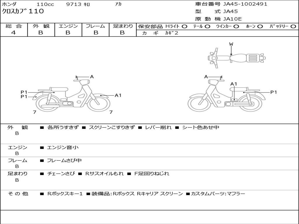| Номер рамы / VIN | JA45-1002491 |