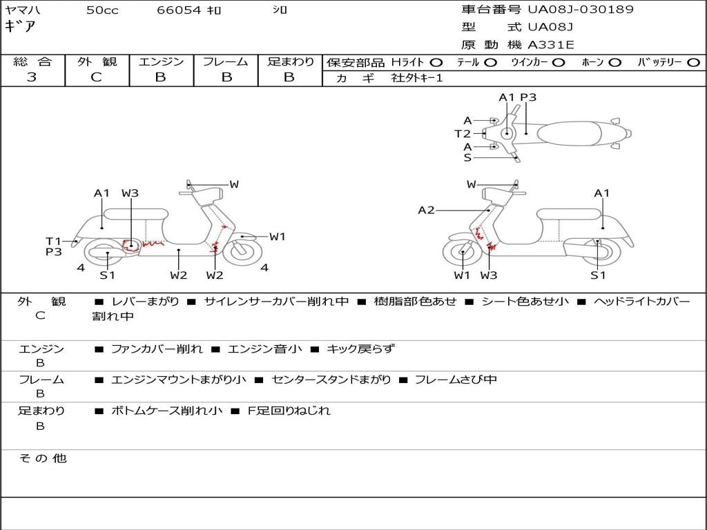 | Номер рамы / VIN | UA08J-030189 |