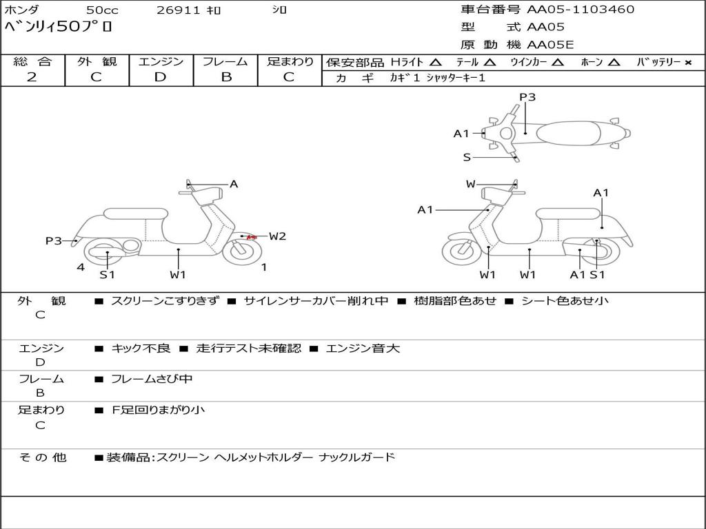 | Номер рамы / VIN | AA05-1103460 |
