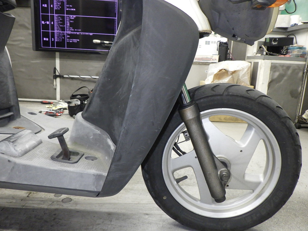 | внешняя часть вилки | царапины, потек масла <много>, слабый |