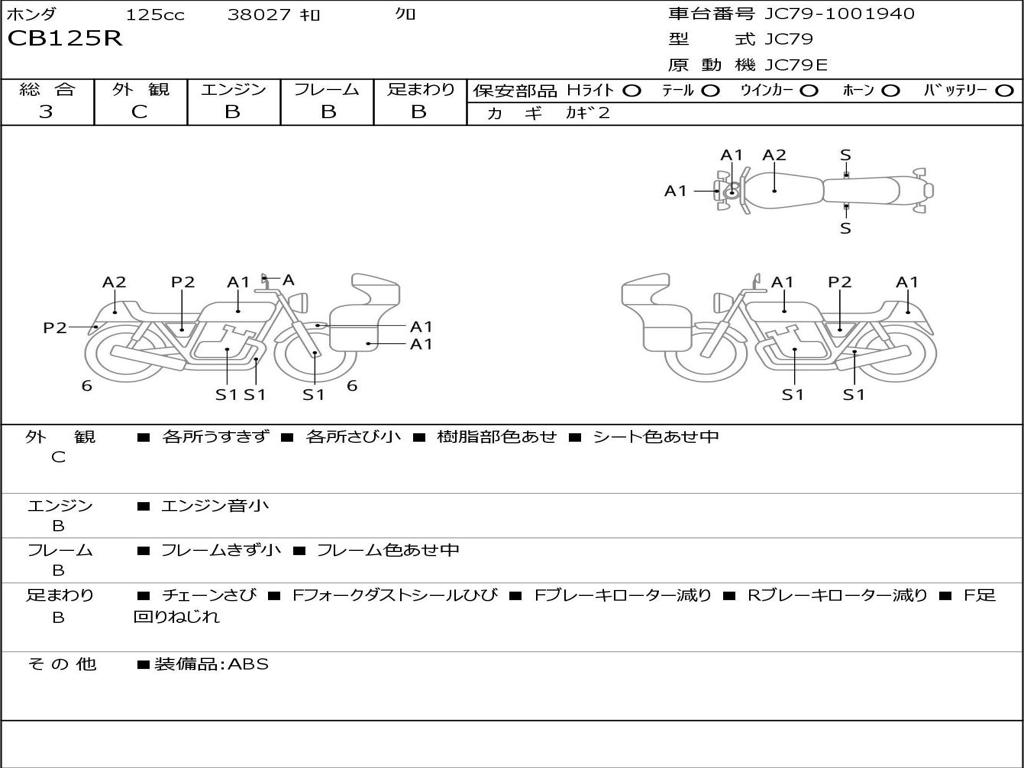 | Номер рамы / VIN | JC79-1001940 |