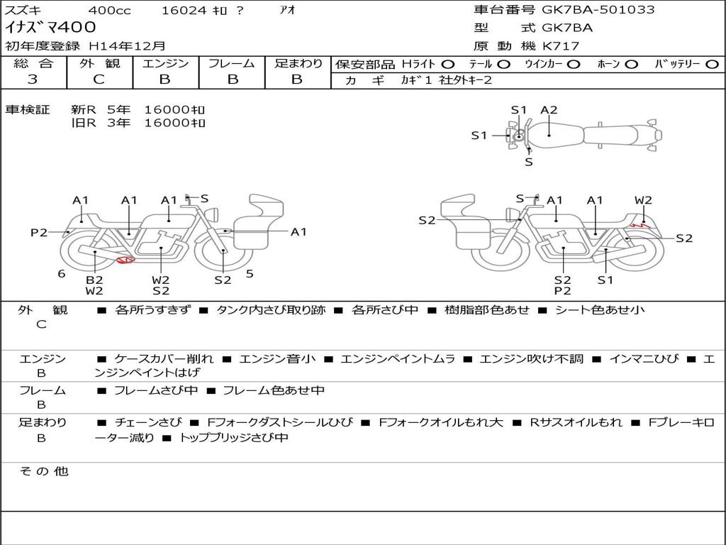 | Номер рамы / VIN | GK7BA-501033 |