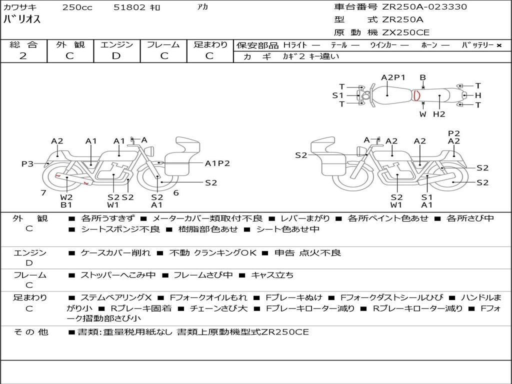 | Номер рамы / VIN | ZR250A-023330 |