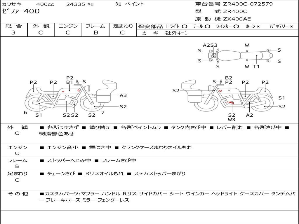 | Номер рамы / VIN | ZR400C-072579 |