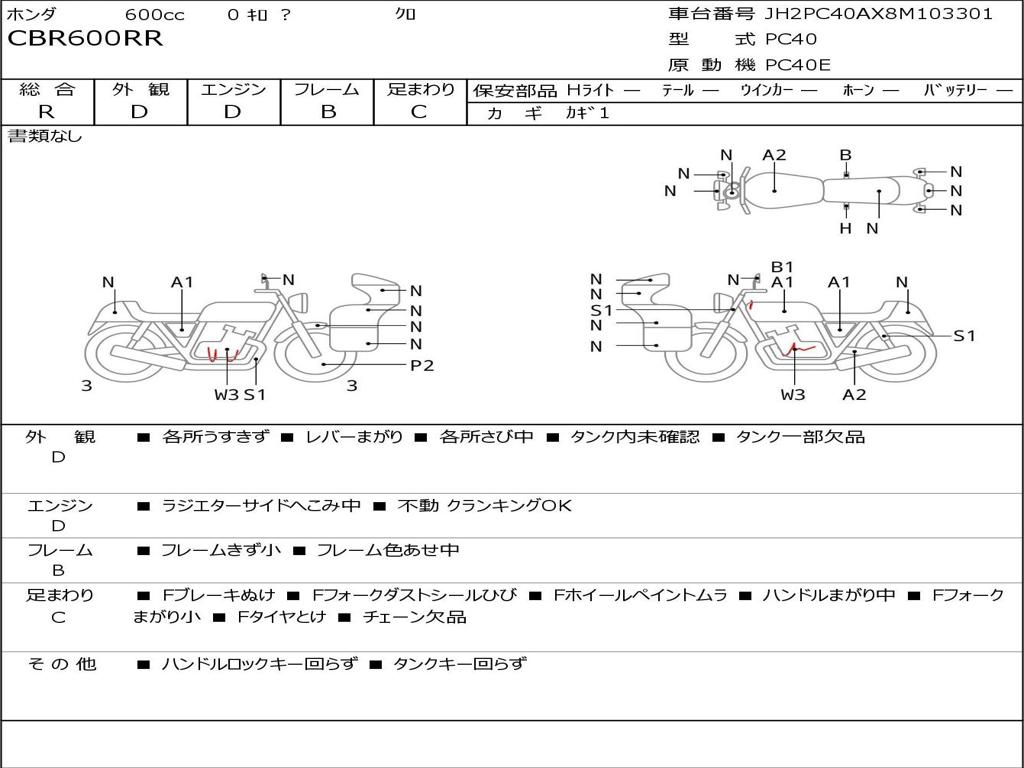 | Номер рамы / VIN | JH2PC40AX8M103301 |