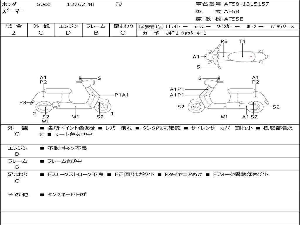 | Номер рамы / VIN | AF58-1315157 |