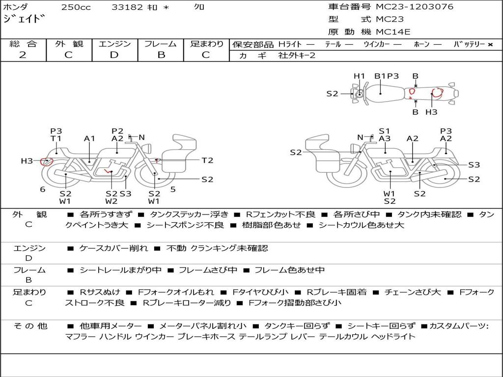 | Номер рамы / VIN | MC23-1203076 |