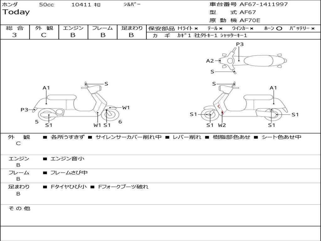 | Номер рамы / VIN | AF67-1411997 |
