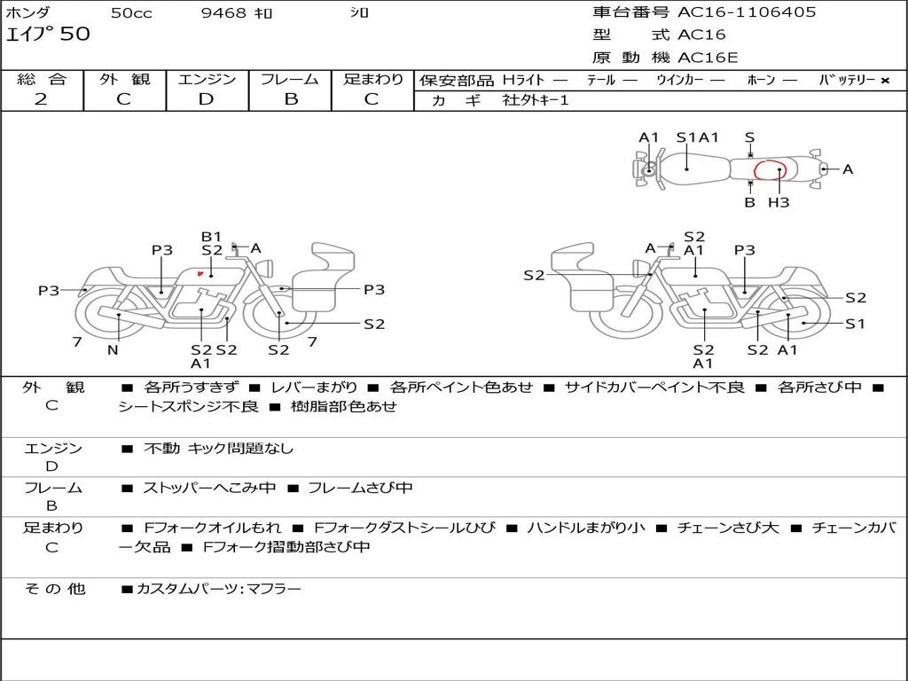 | Номер рамы / VIN | AC16-1106405 |