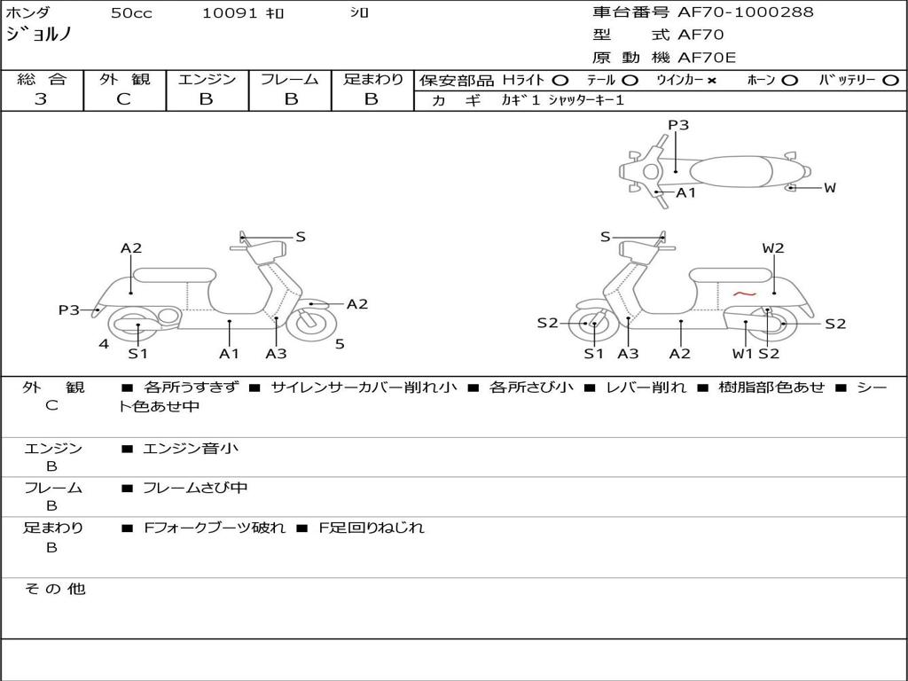 | Номер рамы / VIN | AF70-1000288 |