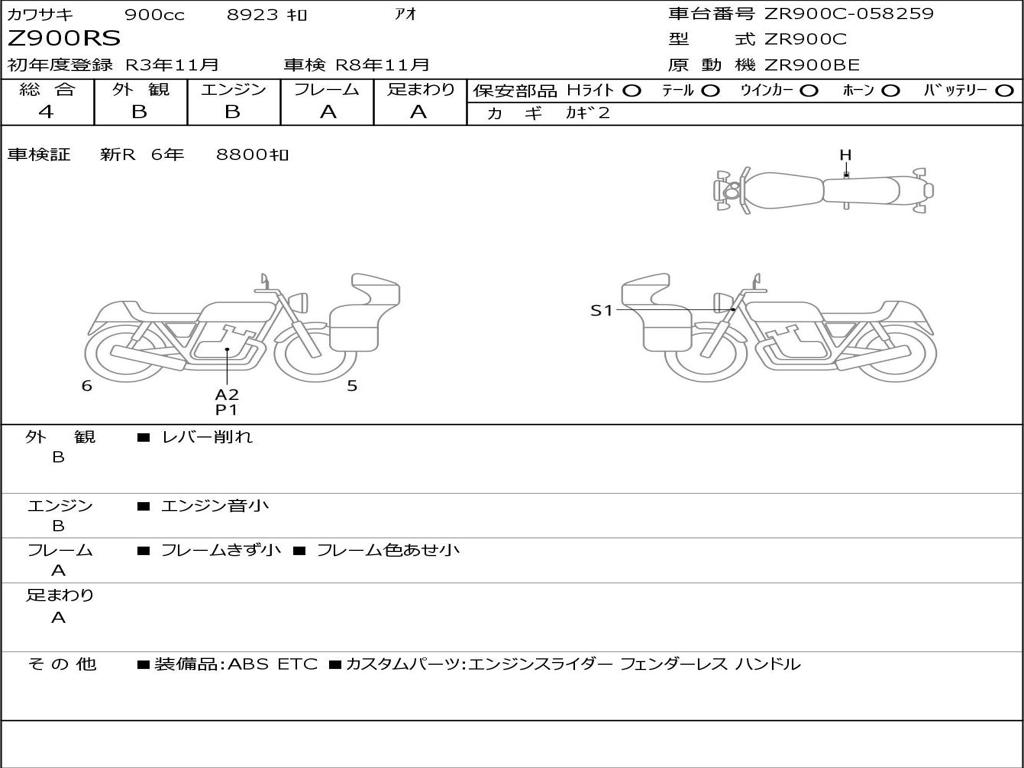 | Номер рамы / VIN | ZR900C-058259 |