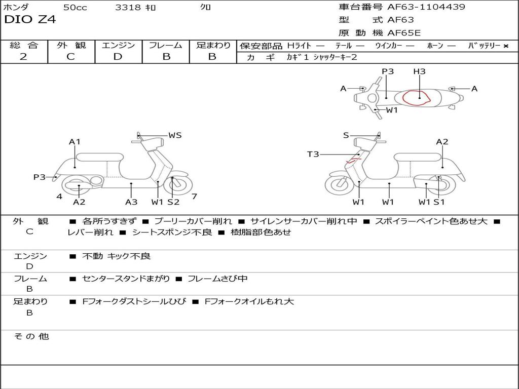 | Номер рамы / VIN | AF63-1104439 |