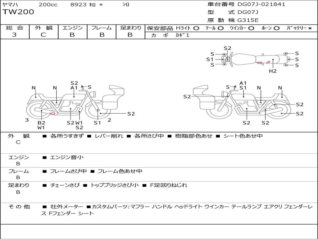 | Номер рамы / VIN | DG07J-021841 |