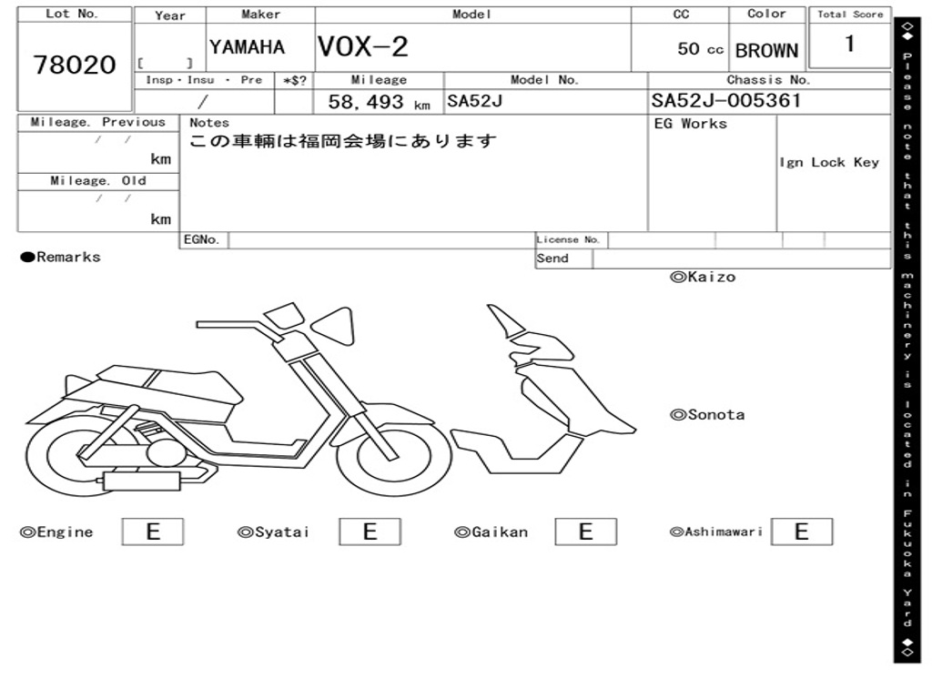 | Номер рамы / VIN | SA52J-005361 |