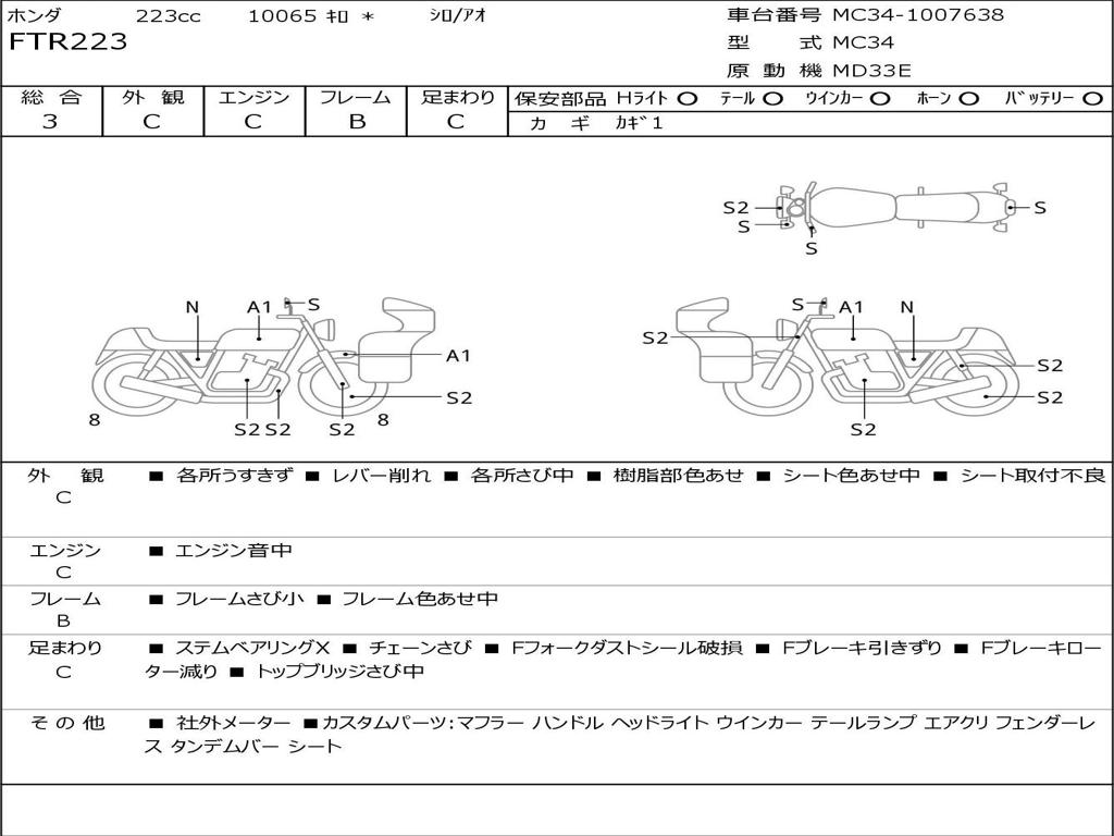 | Номер рамы / VIN | MC34-1007638 |