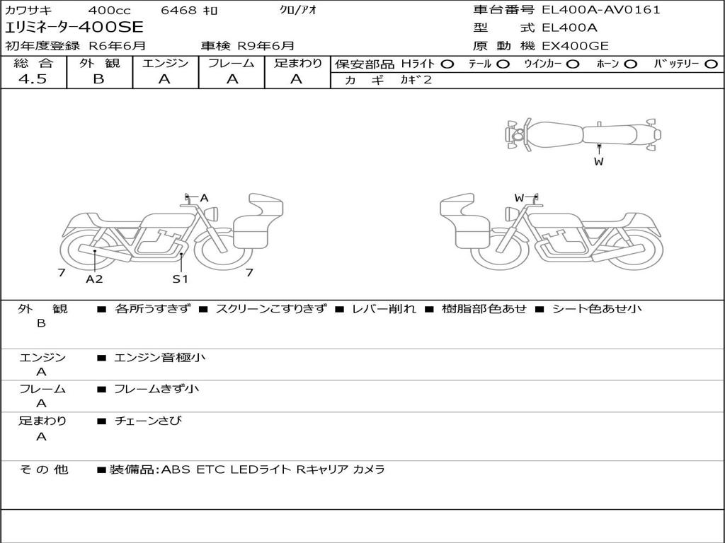 | Номер рамы / VIN | EL400A-AV0161 |