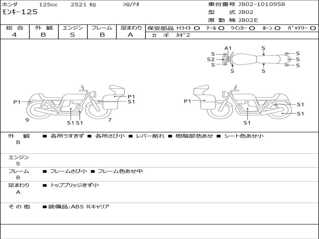 | Номер рамы / VIN | JB02-1010958 |