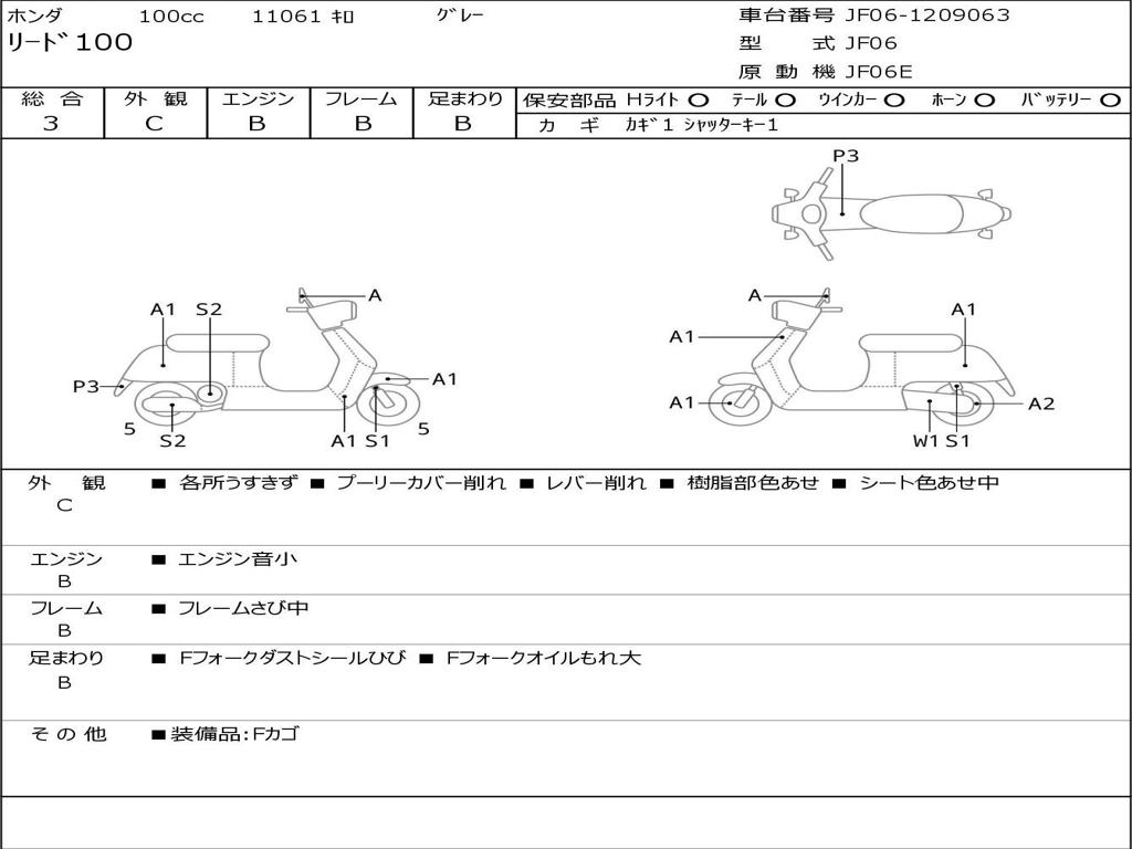 | Номер рамы / VIN | JF06-1209063 |