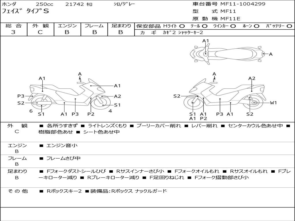 | Номер рамы / VIN | MF11-1004299 |