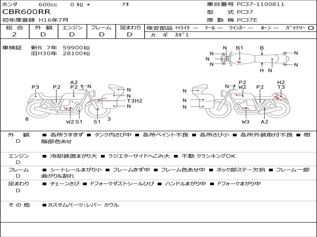 | Номер рамы / VIN | PC37-1100811 |
