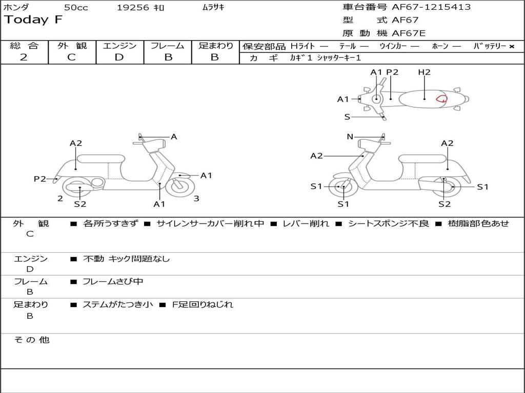 | Номер рамы / VIN | AF67-1215413 |