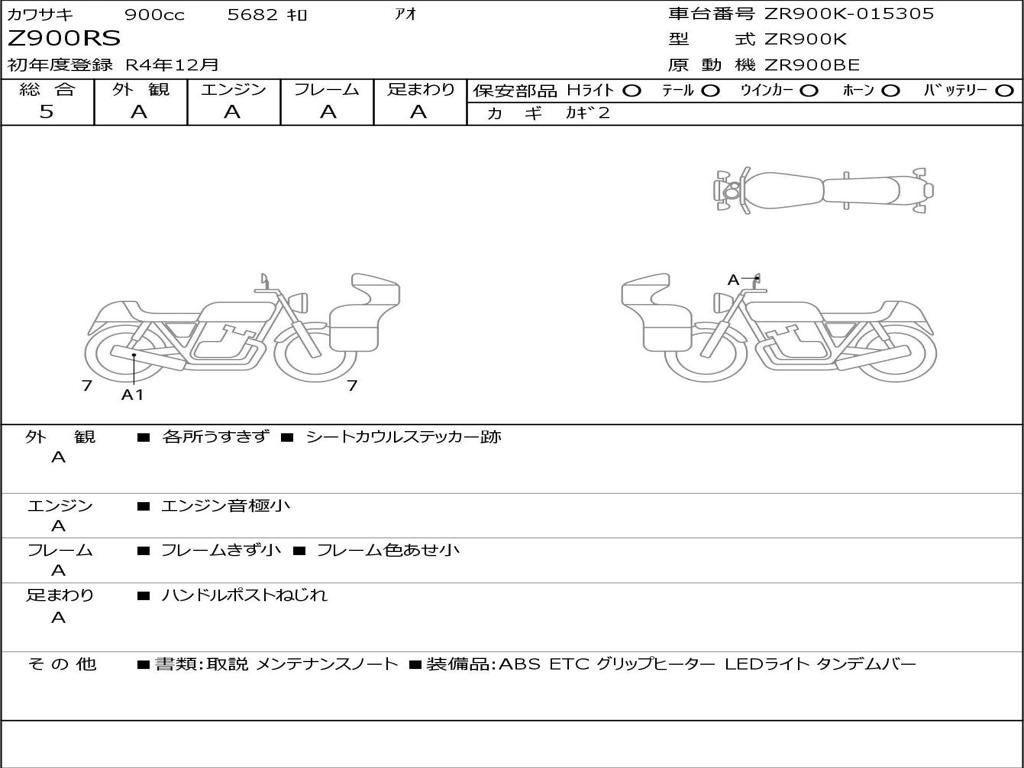 | Номер рамы / VIN | ZR900K-015305 |