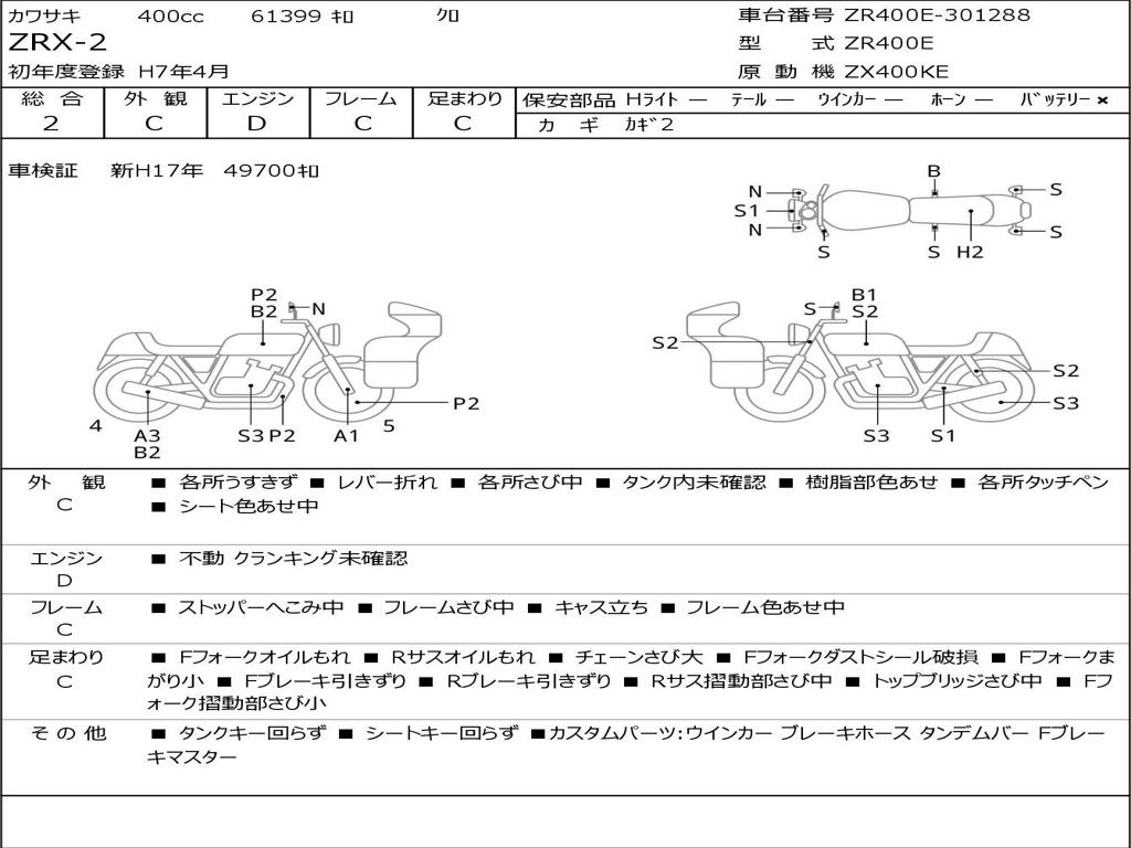 | Номер рамы / VIN | ZR400E-301288 |