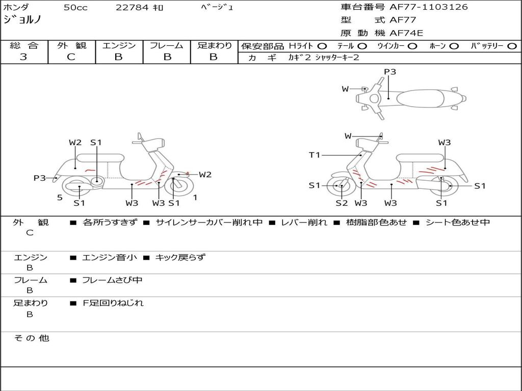 | Номер рамы / VIN | AF77-1103126 |