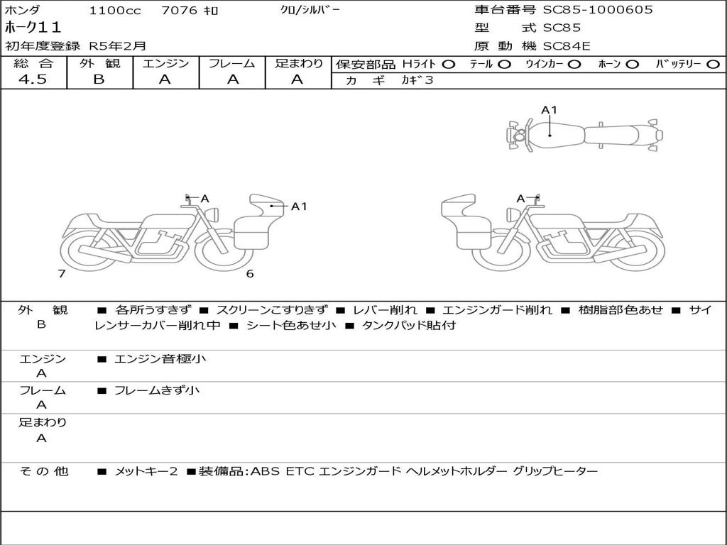 | Номер рамы / VIN | SC85-1000605 |