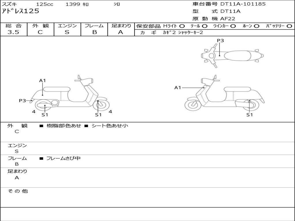 | Номер рамы / VIN | DT11A-101185 |