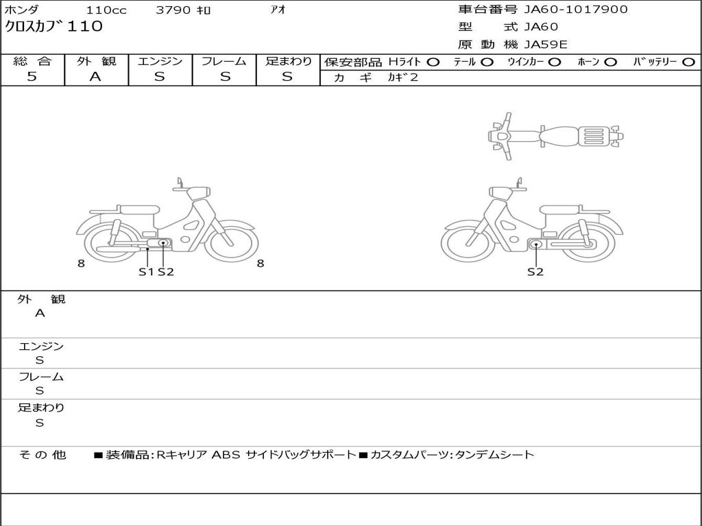 | Номер рамы / VIN | JA60-1017900 |
