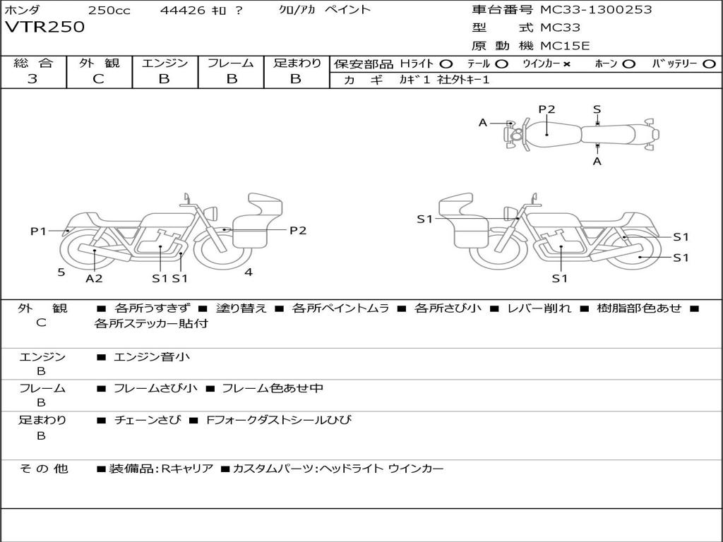 | Номер рамы / VIN | MC33-1300253 |