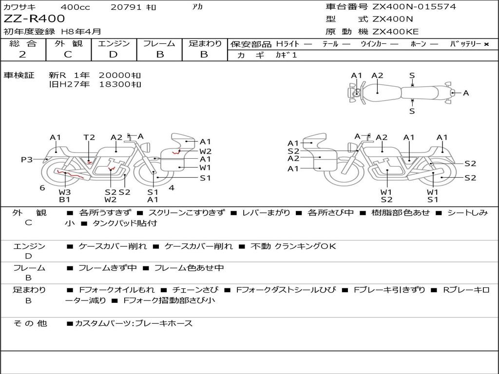 | Номер рамы / VIN | ZX400N-015574 |
