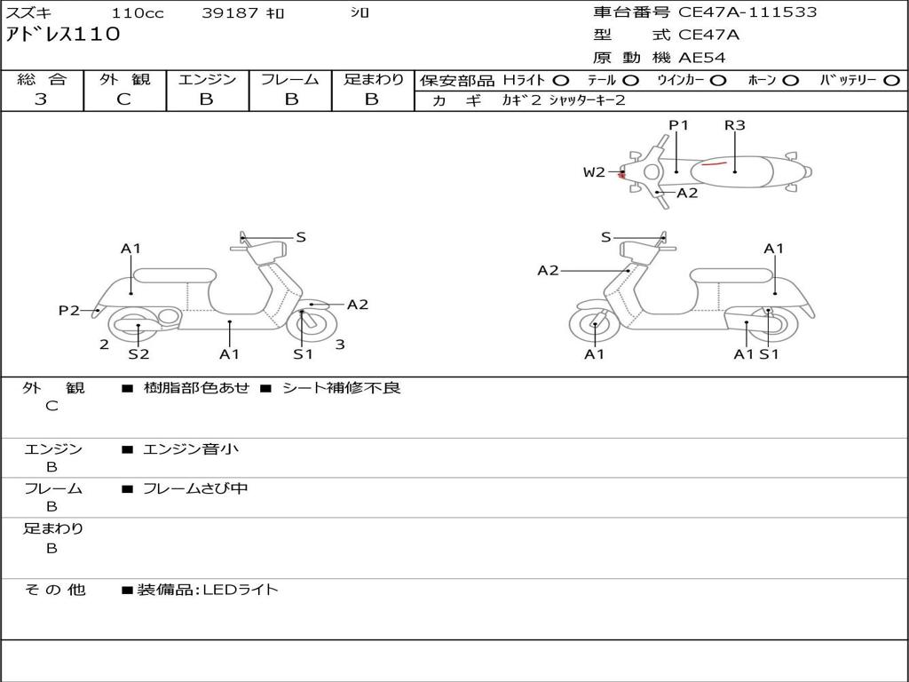 | Номер рамы / VIN | CE47A-111533 |