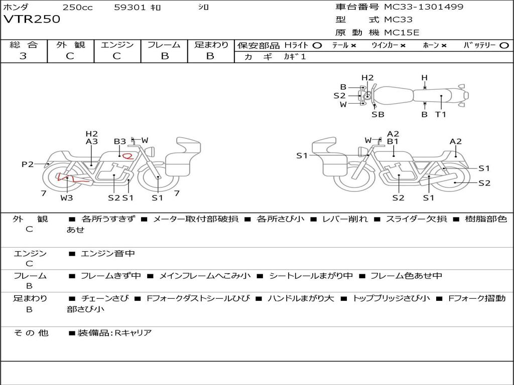 | Номер рамы / VIN | MC33-1301499 |