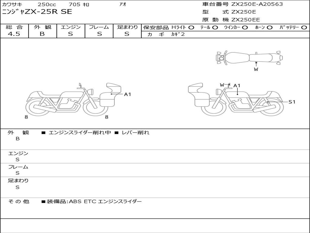 | Номер рамы / VIN | ZX250E-A20563 |