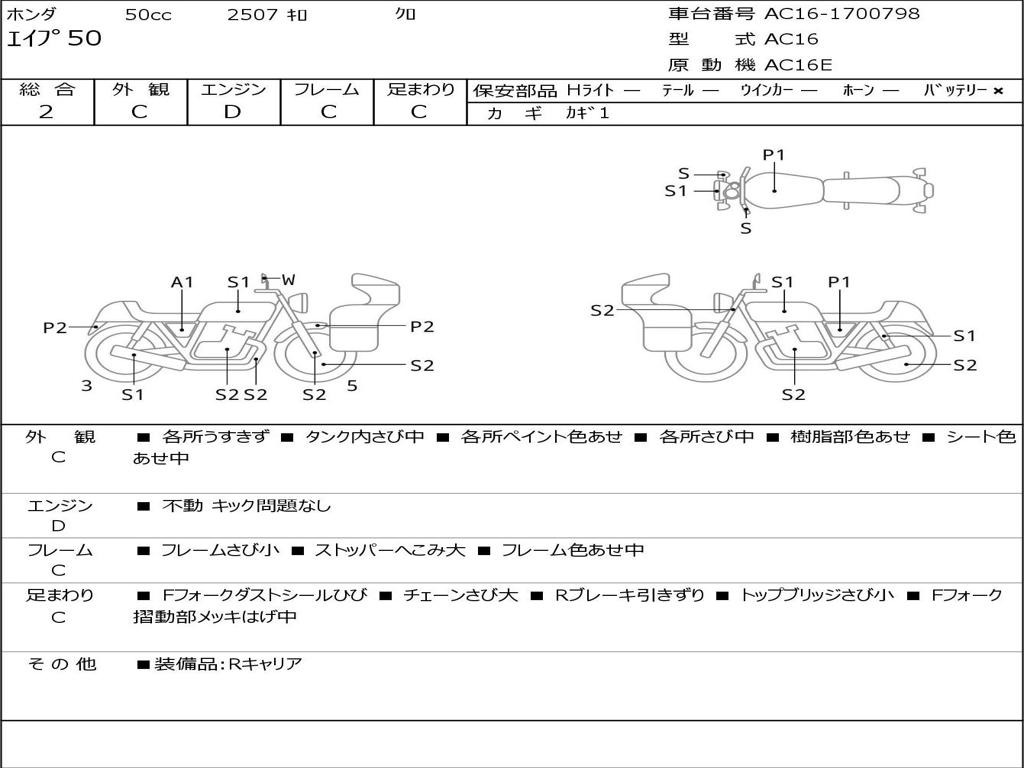 | Номер рамы / VIN | AC16-1700798 |