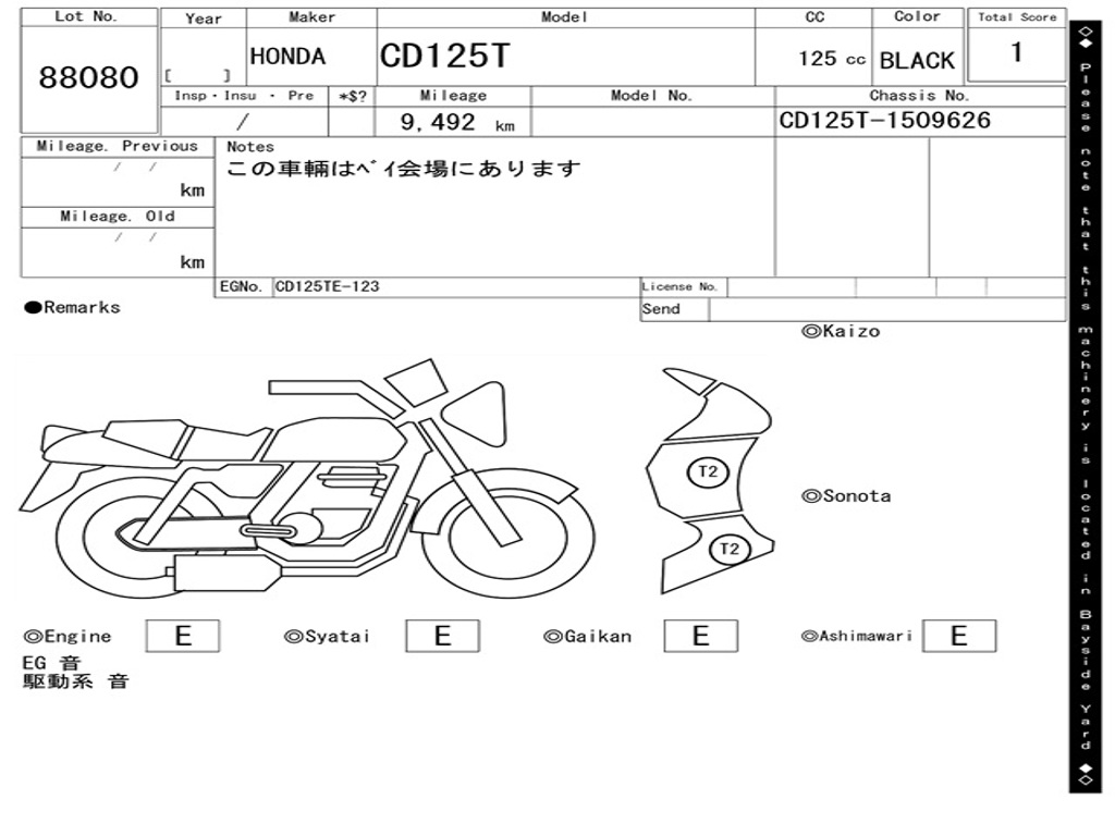 | Номер рамы / VIN | CD125T-1509626 |