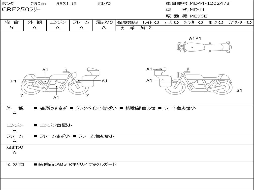| Номер рамы / VIN | MD44-1202478 |