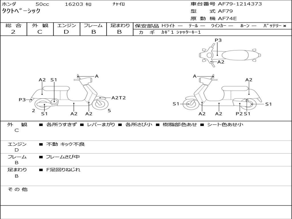 | Номер рамы / VIN | AF79-1214373 |