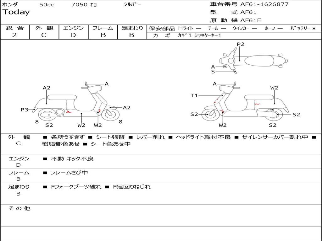 | Номер рамы / VIN | AF61-1626877 |