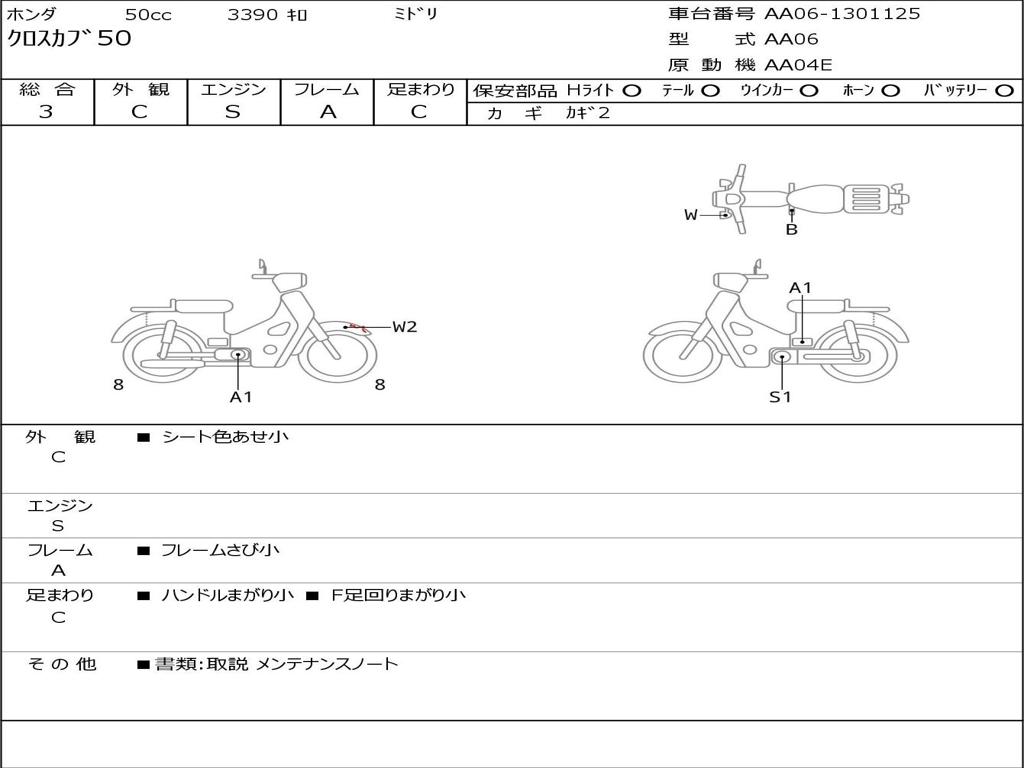 | Номер рамы / VIN | AA06-1301125 |