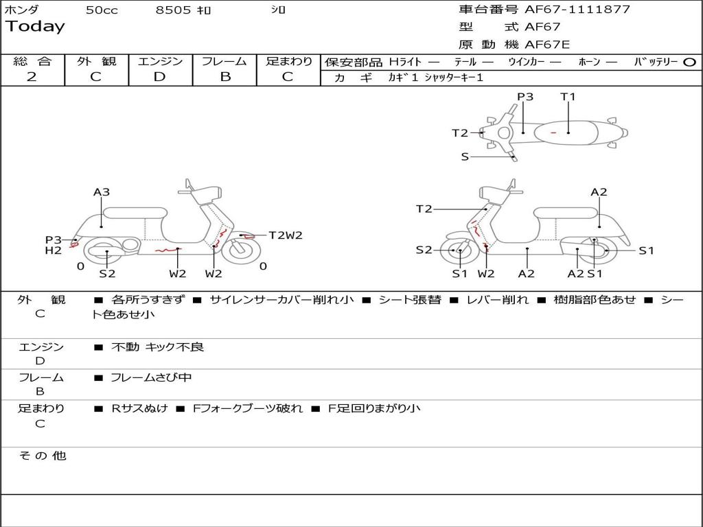 | Номер рамы / VIN | AF67-1111877 |