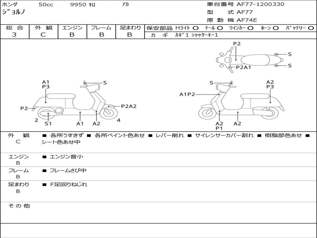 | Номер рамы / VIN | AF77-1200330 |