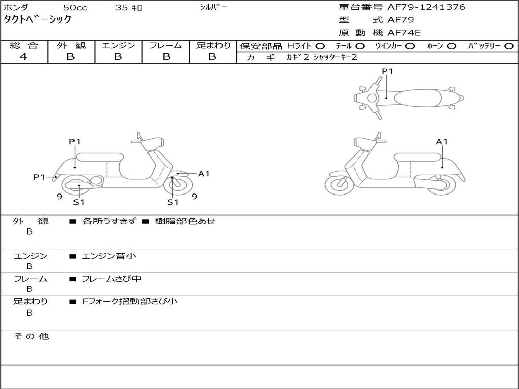 | Номер рамы / VIN | AF79-1241376 |